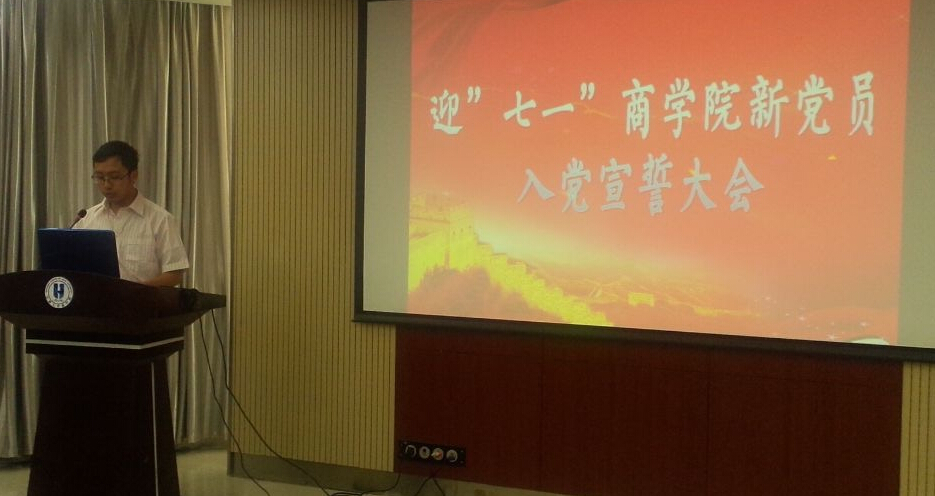 6月30日上午9时,3522vip浦京集团官网迎“七一”教工、学生新党员入党宣誓大会在东荣大厦604报告厅顺利举行。3522vip浦京集团官网党委副书记兼副院长范庆文老师,2013级辅导员金博老师以及全体教工、学生新党员参加了本次宣誓大会。大会由3522vip浦京集团官网2012级辅导员荣诗达老师主持。