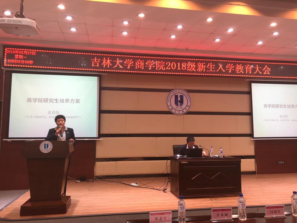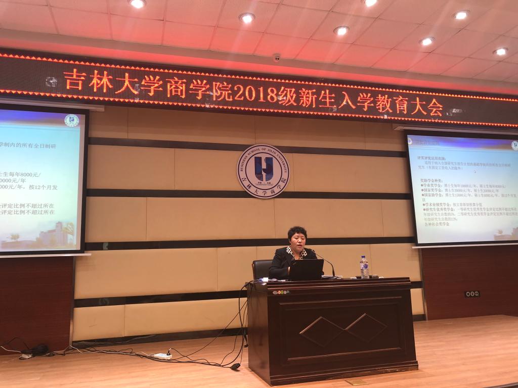 最后,研究生辅导员甄宓老师针对研究生的日常生活管理提出了具体要求。甄老师表示,希望每一名同学都能严以自律,努力学习,积极配合学院工作,争做一名合格的吉大商学人。