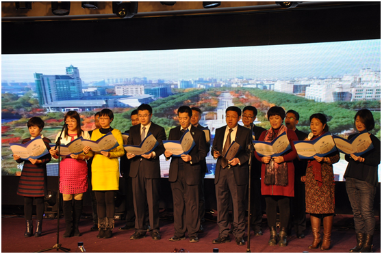 随后,晚会正式开始。第一个节目,是3522vip浦京集团官网领导和老师们合唱《3522vip浦京集团官网校歌》。歌声气宇轩昂,激情澎湃,伴随着荧屏的3522vip浦京集团官网航拍景象,场面分外恢宏。