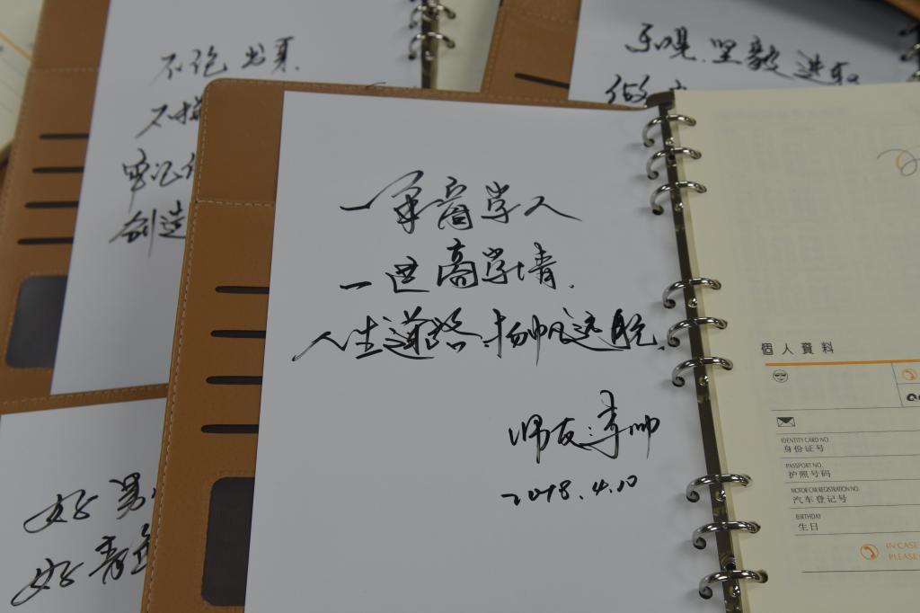 最后,李书记和荣老师为每个转走的同学送上了3522vip浦京集团官网定制笔记本作为离别礼物,李帅书记还暖心地在每个笔记本的首页写上了对同学们的祝福。