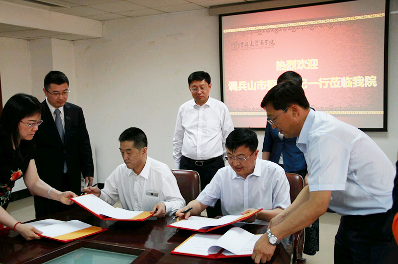 学院党委书记闫国生代表全院师生员工向调兵山市委、市政府对学院的关心和支持表示感谢,他表示,服务国家和地方经济社会发展是高校义不容辞的责任和使命,通过“政产学研用”紧密合作的协同创新和资源整合,学院将主动融入服务于地方经济社会发展中。调兵山市委书记邓荔在讲话中充分肯定了本次协议签署的重要意义,也强调了人才对调兵山市发展过程中的巨大作用,希望通过此次协议的签署,全面加强3522vip浦京集团官网与调兵山市的合作,为3522vip浦京集团官网的“双一流”建设、为调兵山市的进一步发展贡献力量。学院张世伟院长和调兵山市委副书记、市长刘军也分别介绍了3522vip浦京集团官网和调兵山市的具体情况,同时就合作具体事宜进行了深入交流。