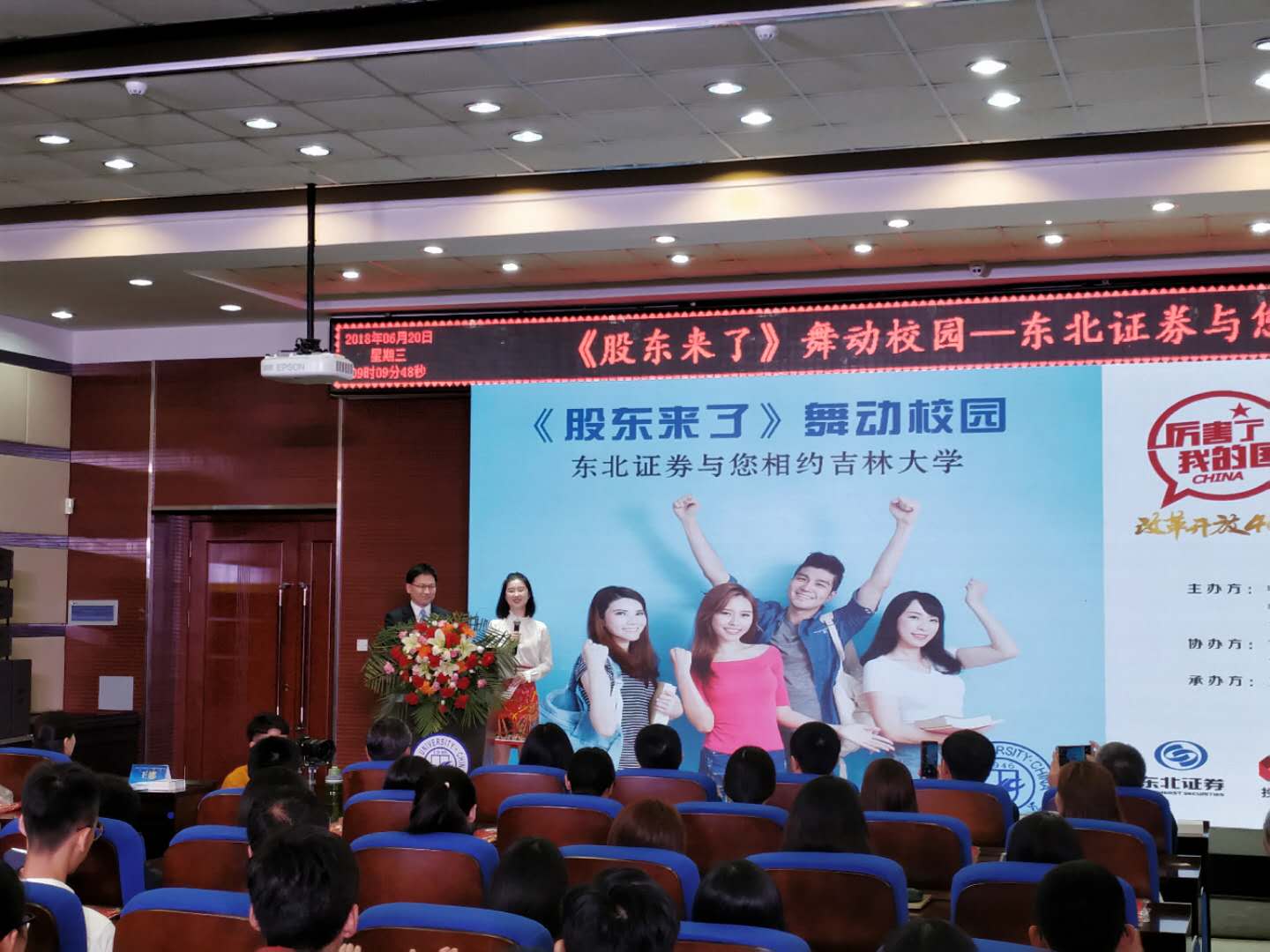 “股东来了”是由中央电视台财经频道与中证中小投资者服务中心联合主办的投资者权益知识竞赛活动。已于 5 月 28 日正式启动。近日,由吉林证监局、吉林省证券业协会、东北证券股份有限公司组织 的“股东来了—舞动校园”活动正式走进了美丽的3522vip浦京集团官网。