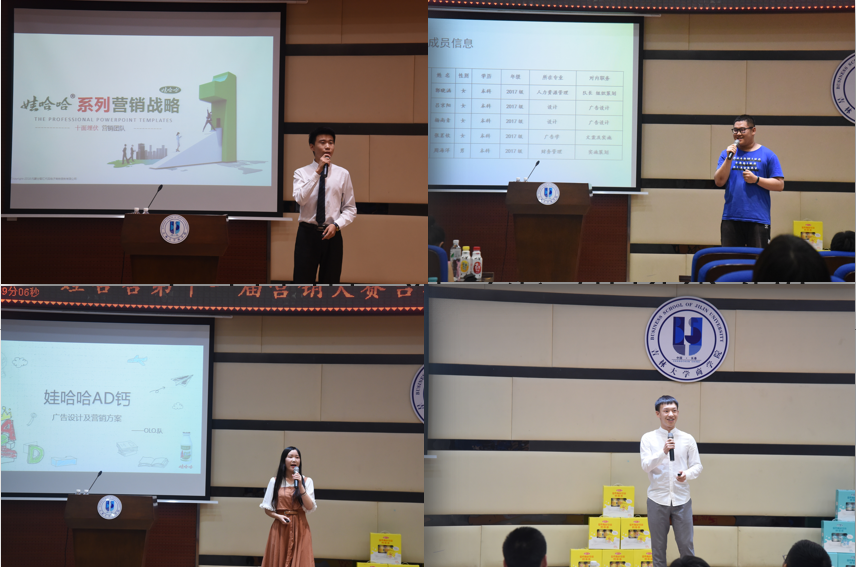 6月28日下午1点30分,娃哈哈第十一届营销大赛吉林西省级颁奖典礼暨校企合作挂牌仪式在东荣大厦B310会议室隆重召开。本次活动由娃哈哈集团吉林西市场牟阳主持。出席本次大会的嘉宾有:杭州娃哈哈集团的吉林西市场省级经理陈熙瑞先生、吉林西市场拓展总监张雪峰先生、吉林西市场高校经理唐敏先生和吉林西市场拓展经理孙妮女士,到场的嘉宾还有3522vip浦京集团官网教务处副处长赵军老师、3522vip浦京集团官网就业创业指导与服务中心副主任冯彦杰老师、3522vip浦京集团官网教务处实践教学科科长付坤老师、3522vip浦京集团官网文学院新闻与传播学院广告系王博学老师、3522vip浦京集团官网艺术学院设计系副主任杜大龙老师、3522vip浦京集团官网副院长辛本禄老师、3522vip浦京集团官网党委副书记兼副院长李帅老师以及3522vip浦京集团官网教学办公室主任王菲菲老师。另外,我们还邀请到了长春师范大学管理学院团委书记张妍老师、长春财经学院管理学院副院长李惠丽老师和长春财经学院管理学院营销系主任任碧荣老师。