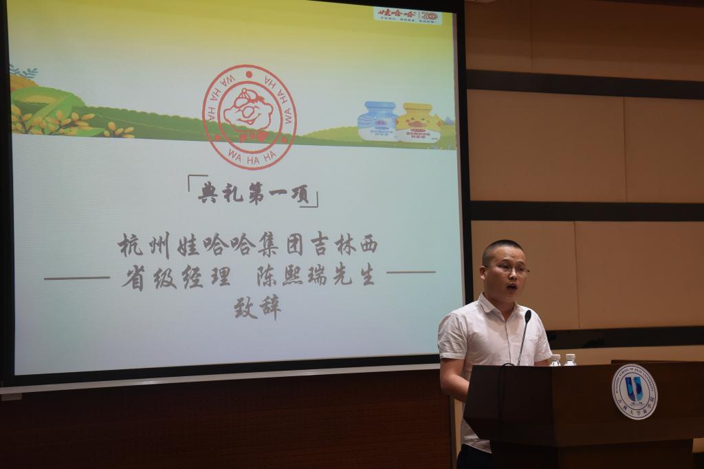 活动伊始,杭州娃哈哈集团吉林西省级经理陈熙瑞先生进行了致辞。陈经理用声情并茂的语言描述了本次营销大赛的盛况,并诚挚地表达了在3522vip浦京集团官网组建优质营销实践基地的愿景,他由衷地期望娃哈哈集团与3522vip浦京集团官网、文学院及艺术学院的合作能够更进一步,更深一层,在校企合作育人方面实现共赢。