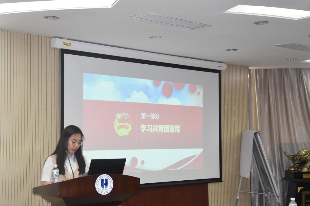 金博老师带领大家共同学习共青团员章程,通过诵读各章介绍了章程总则、团员基本要求、团的基层组织构成、团籍团徽和团歌等内容。金博老师希望各团支部所有成员能自己主动学习、认真探讨章程,做到了解、熟知共青团员章程。通过介绍,各团组织对共青团员章程有了更清晰的认识,明确了自己作为团员的基本任务。