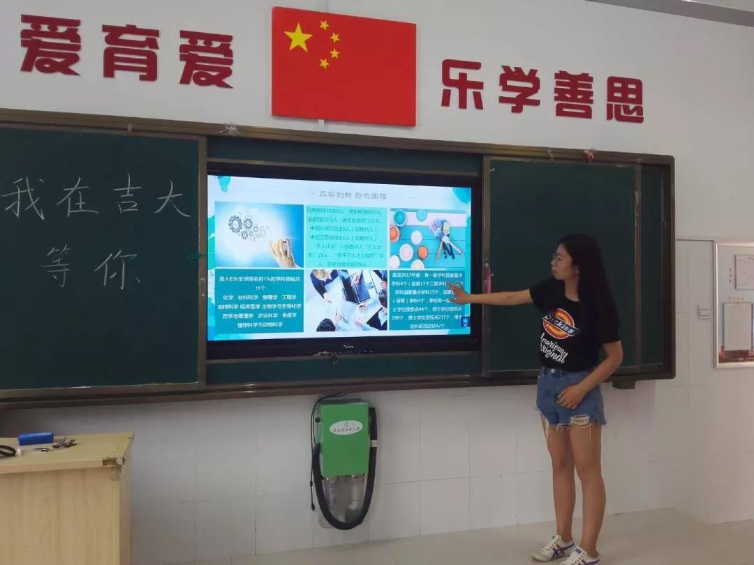 8月11日,在实际进行宣讲前,他们组员讨论了具体的分工,先后进行了PPT制作、与校方主任进行交涉、与进行宣讲的班级班主任取得联系等准备工作。在与校方联系并且确定具体时间后,为保证宣讲顺利进行,他们组员还进行了一次预演讲。8月12日,团队于午休期间进行了宣讲活动。在进行宣讲之前,他们先给同学们放了招生宣传片,让同学们先有了初级层次的认识。之后团队分别就浦京集团官网的历史沿革、学校简介、人才培养和人文生活四个方面展开。历史沿革方面,他们介绍了3522vip浦京集团官网从建校以来进行的规模扩建,以及学校合并后扩展为六个校区,在这个过程中充分展示“吉大极大”的特点。