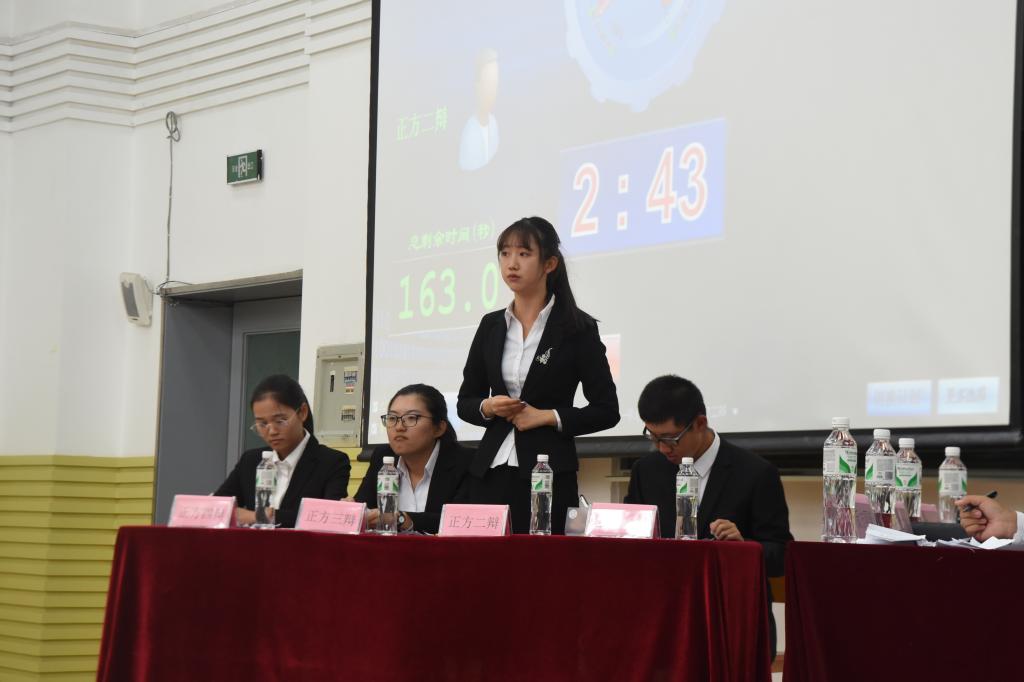 在比赛中,正反双方不断与台下观众互动,将同学们带入本次辩题的背景中,呼吁他们对未来有所思考。全场气氛十分热烈,掌声不断。双方四辩结辩时都结合实际,呼吁同学们为梦想应不惧困难、勇于拼搏,以梦为马,不负韶华!