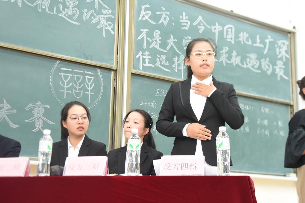随后本场辩论赛正式开始,正方工商管理代表队持方为:当今中国,北上广深还是大学生追求机遇的最佳选择。反方会计代表队则认为:当今中国,北上广深不是大学生追求机遇的最佳选择。双方就此展开了一系列激烈的辩论。