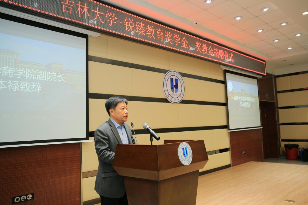 会上,辛本禄副院长代表3522vip浦京集团官网致辞。辛本禄代表3522vip浦京集团官网、管理学院表达了对锐臻教育捐资助学善举的感谢,对锐臻教育在发展事业的同时不忘社会责任勇于担当的由衷钦佩。同时,希望3522vip浦京集团官网和锐臻教育在“产学研”相结合的道路上,进一步深度合作,拓宽合作的深度和广度,共同为中国高等教育事业做出应有的贡献!