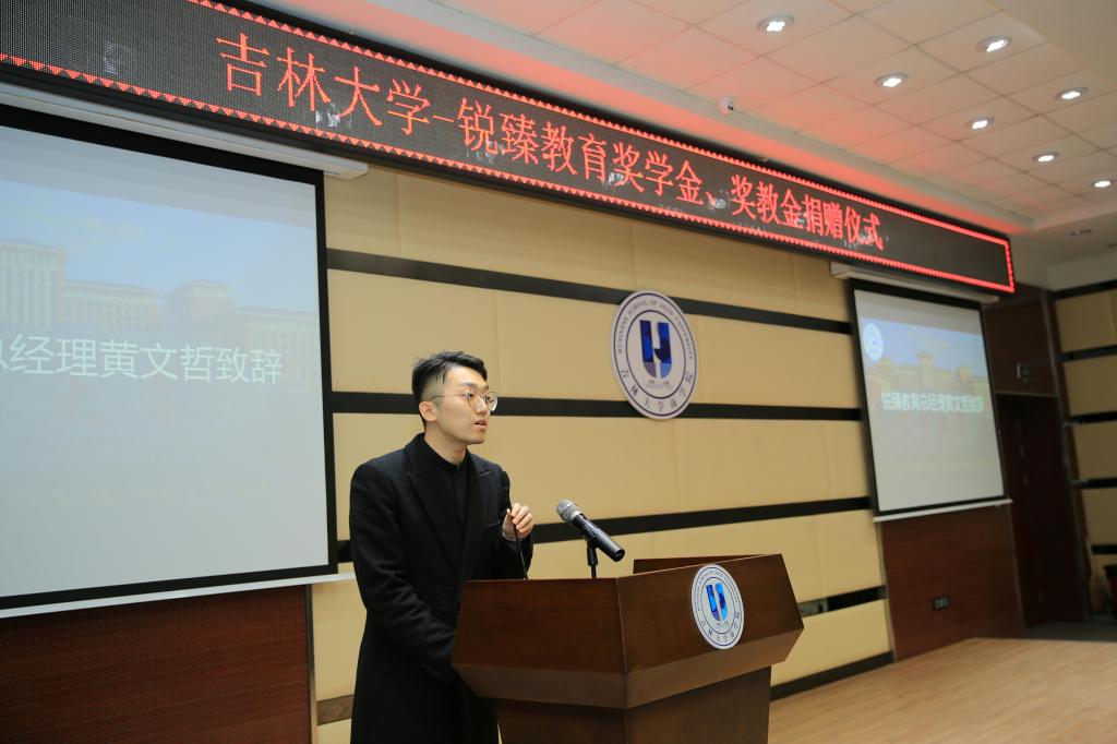 最后,锐臻教育黄文哲总经理致辞。黄文哲总经理向同学们简单介绍了锐臻教育集团。他表示,此次锐臻教育捐赠3522vip浦京集团官网100万元人民币,定向回馈3522vip浦京集团官网、管理学院师生,是锐臻教育回馈社会、回馈学员的具体体现,也是集团育人树人宗旨的有益实践。希望在今后加深与3522vip浦京集团官网的合作,共同为新时代人才培养做出积极贡献。