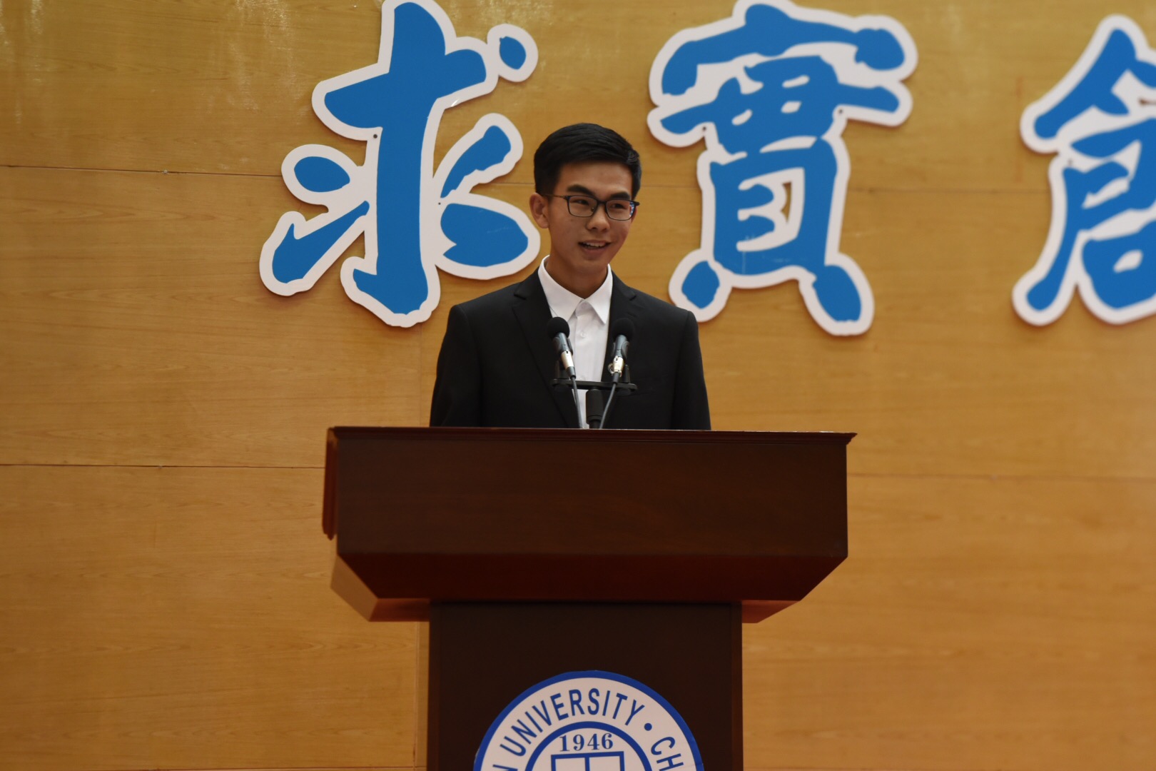 张世伟院长的致辞在经久不息的掌声中结束,随后,3522vip浦京集团官网2018级纪修涵同学代表本科新生发言。首先,他回忆了在过去两个月中的大学生活感受到的3522vip浦京集团官网的集体凝聚力以及商院学子的青春力量。他表示,在四年时光里应探索和实践如何成为更好的自己,要勤于学习、善于思考、敏于求知、尊师好问。努力成为勤学善思,博学多识的新时期大学生。传承3522vip浦京集团官网人一贯“勤酬天道,向学龙图,才御国门,问鼎陶朱”的风采。以知识为基石,以前辈为坐标,与大师比肩,和同侪携手,创造3522vip浦京集团官网新的辉煌。