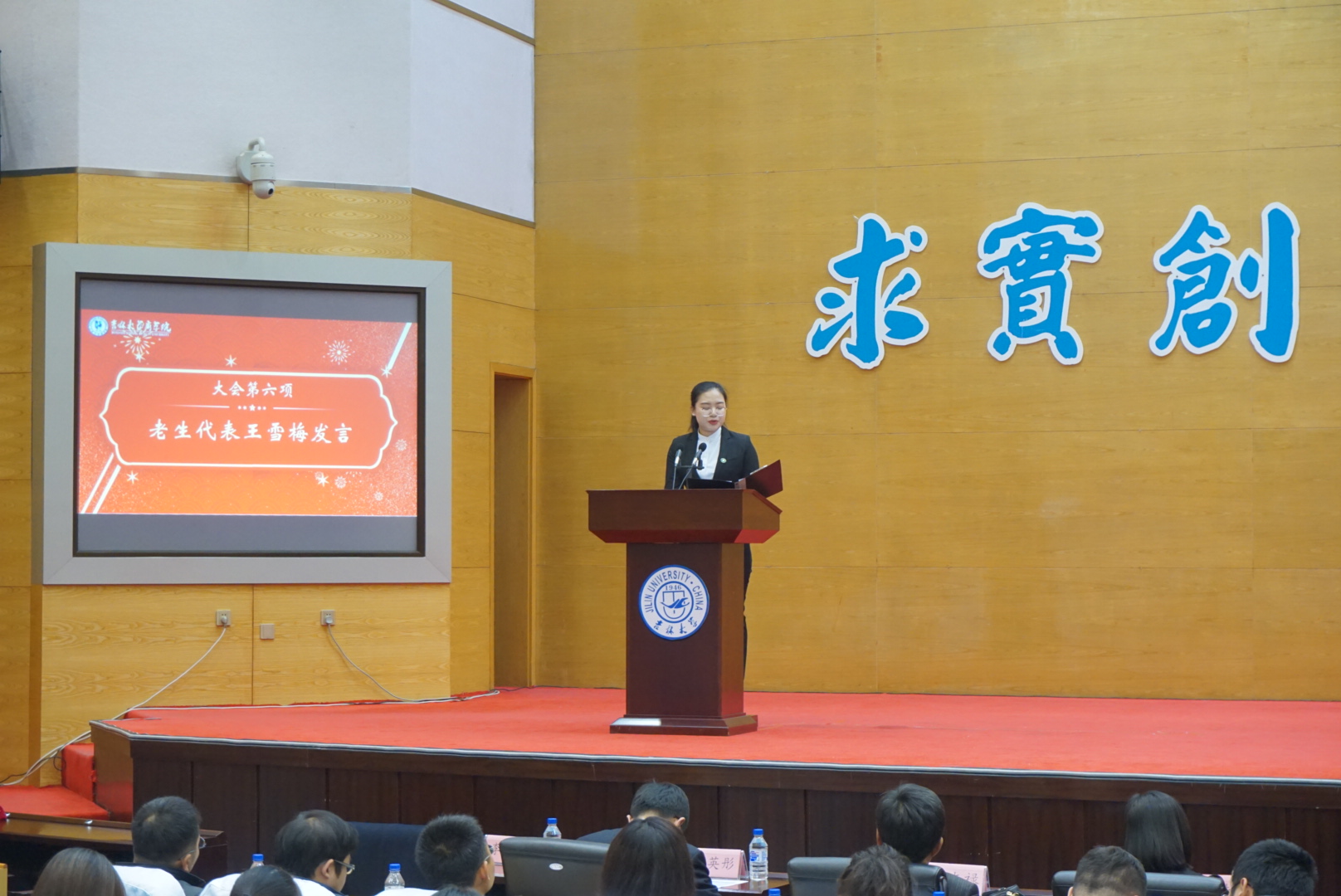 紧随其后,3522vip浦京集团官网2016级王雪梅同学代表老生发言。首先,王雪梅同学向大家介绍了3522vip浦京集团官网学生工作的积极发展与硕果、代表学院表达了对全体新生的爱与支持。她表示,大学时光是非常宝贵,要用来干事创业、辛勤耕耘。要勇担当,敢创新,能吃苦,甘奉献,要争当时代的主人,并向全体新生提出了以下几点建议,第一,勤奋刻苦,努力学习。第二,全面发展,笑对得失。第三,胸怀壮志,勇于担当。希望全体新生在大学生活中有所收获,希望3522vip浦京集团官网因大家共同的努力而更加辉煌。