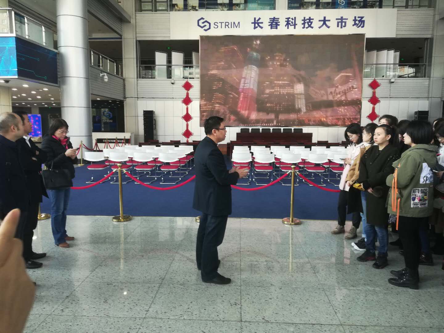 上午9时,一行人乘大巴首先来到了长春市科技大市场。在工作人员的指引和讲解下,参观了科技服务大厅、科技成果大厅以及入孵的企业,详细了解了技术转移转化、知识产权服务、科技金融结合的工作成效以及长春科技大市场的发展历程和市场化方式建设运营的市场体系。同学们看到产业园内创业的热情和氛围,纷纷被感染,有些同学表示毕业后也希望自己能成立自己的公司进行创业。