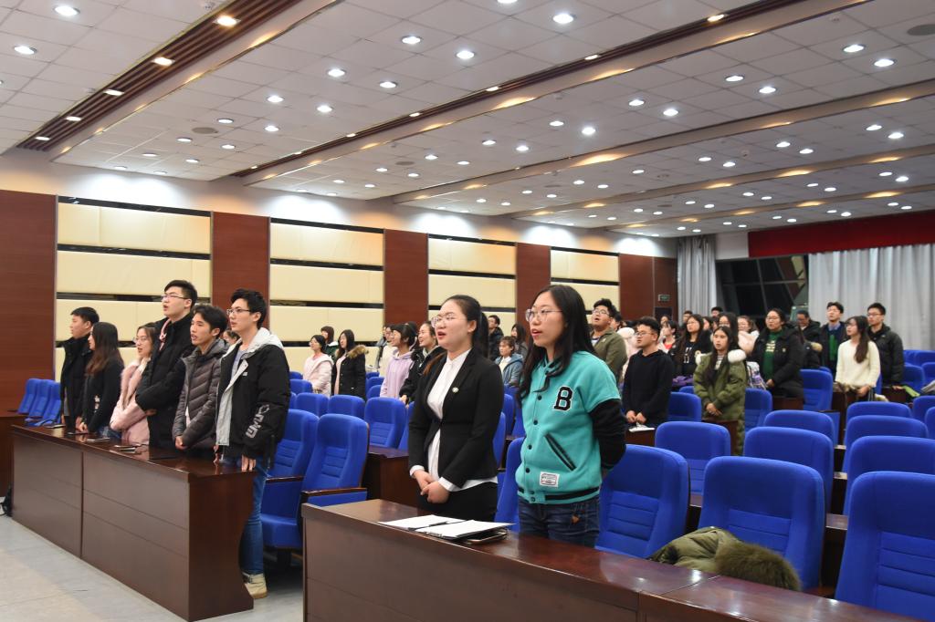总结大会于16点30分准时召开。会议开始,大家一同起立合唱了《中国共青团团歌》。然后,学生会主席王雪梅对本学期的工作进行总结汇报,并宣读了各部门成员的表彰决定,金博老师为获奖的同学们依次颁奖并合影留念。接下来,获奖代表梁家铭同学上台发言,表示会总结经验,在今后的工作中更加努力,更好的为同学们服务。最后,全体成员一起合唱了《3522vip浦京集团官网校歌》并合影留念。