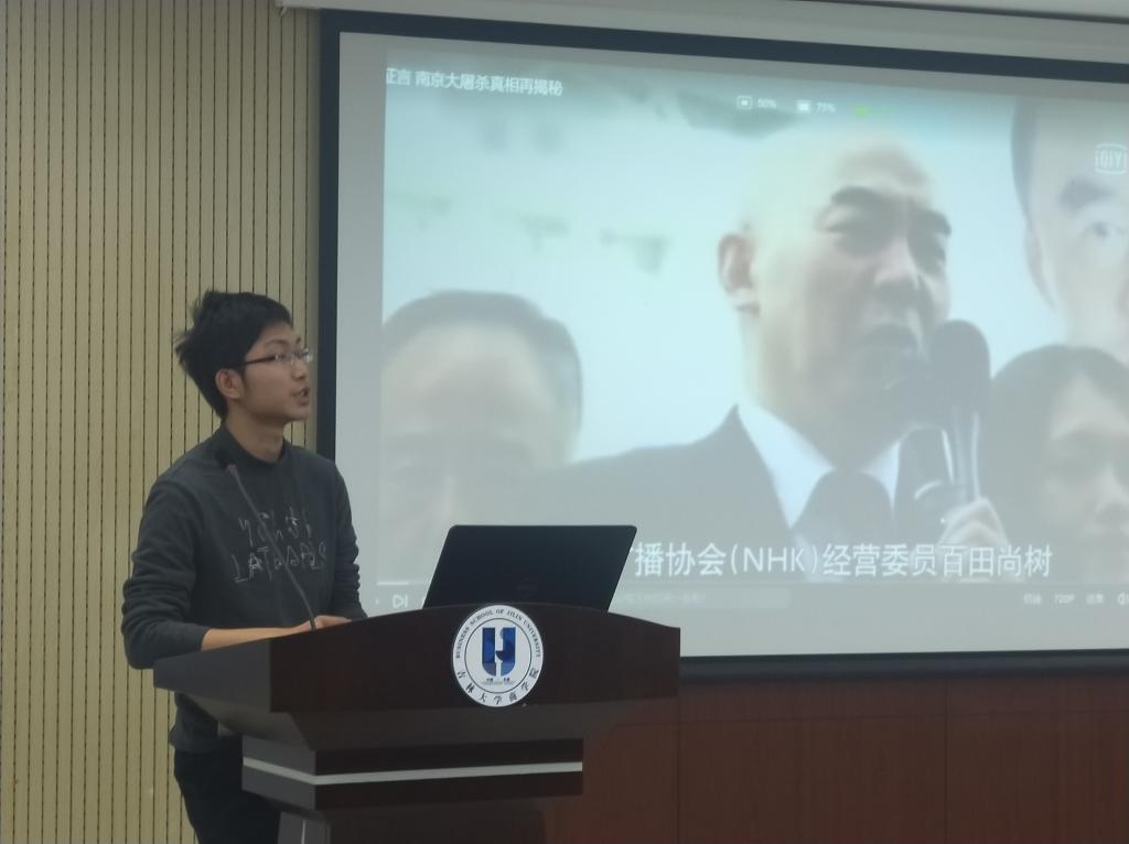 会议第一项,团委组织部副部长杨铠翔对南京大屠杀历史进行了简要介绍,缅怀惨遭日本侵略者杀戮的死难同胞,缅怀在抗日战争中献出生命的革命先烈和民族英雄。他提出:作为新时代大学生,我们应当缅怀先烈、珍爱和平,同时明确自身历史责任,虽然今天的中国已经富强起来,但“落后就要挨打“的教训一定不能忘记!