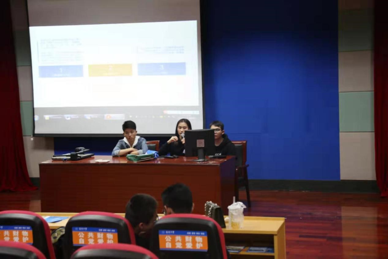 第一部分是宣讲小组成员依照学校招生办提供的ppt内容进行招生宣传。建设工程学院的陈玉慧同学负责拍照记录宣讲活动过程。其中ppt中的“吉大简介”、“吉大校友”、“人才培养”部分内容由3522vip浦京集团官网曾小雅同学负责介绍,在介绍的同时提醒学弟学妹们看看下发的学校招生宣传手册了解2018年3522vip浦京集团官网海南招生情况。通信工程学院的符逸凡同学介绍“国际合作”、和“就业升学”部分。在场的同学们对3522vip浦京集团官网升学和就业满意度之高产生了很大的兴趣。因为南方同学对于北方学校环境的好奇,宣讲小组中的经济学院卓道熹同学还在ppt中加入了学校的学习生活环境部分介绍。吉大南校让同学们生活更加便利和丰富多彩的日新楼,以及鼎新图书馆完善的设备良好的环境等,让到场的学弟学妹们对北方学校环境不好的刻板印象有所改观。