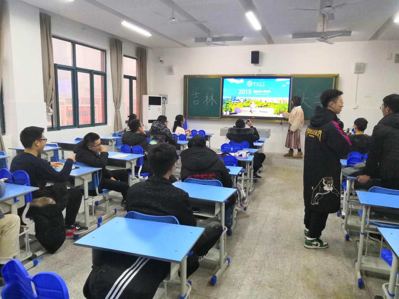 西湖校区是近年来铜陵一中为扩大办学规模在铜陵西湖开发的一处新校区,宣传团队第二天来到了这里,为了让更多的一中学子更深入的了解吉大,宣传活动在逸夫楼高一(五)班进行,团队成员之一的陈诗源同学通过展示PPT的形式对3522vip浦京集团官网进行了一番详细的解说,让更多的学生对吉大的风貌有了更全面的了解,另一位成员肖佳同学对一些学生更是进行了耐心单独的解说,成功消除了一些学生对报考吉大存在的疑虑和误解。