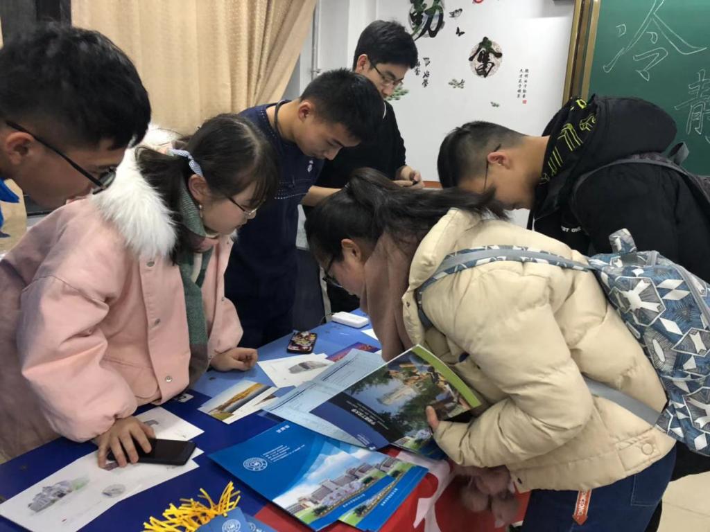 小组首先通过播放宣传片的方式让大家了解3522vip浦京集团官网的地理位置、学校概况与教学成果等。其次通过放映PPT为大家详细介绍了3522vip浦京集团官网的综合实力、建校历史,六大校区、著名校友以及吉大校园春夏秋冬四季景色等。小组成员还为学生与家长分发了学校印制的近年来专业及分数线的宣传页、书签、明信片、笔记本等纪念品,并对于3522vip浦京集团官网招生宣传单上的各项数据进行解释,让正处于迷茫阶段的学弟学妹们有一个清晰的认识。