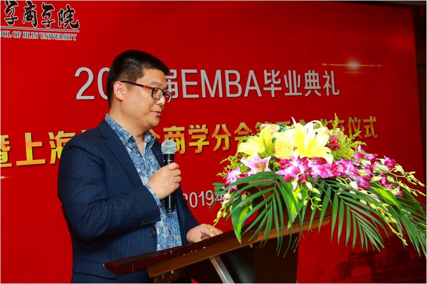 典礼仪式的压轴,由张世伟教院长授致辞。一是祝贺同学们顺利毕业;二是希望同学们毕业后更好地努力拼搏,在各个重要领域和岗位上创造更大辉煌,回报社会、母校和亲人,三是,强调学院对吉大上海校友会商学分会成立给予了极大关心和关注,今天的毕业不是结束,而是一个新的开始,今天商学分会筹委会的成立也将给广大同学们提供一个“校友之家”,大家可以在商学分会里,加强交流互动,合作双赢。