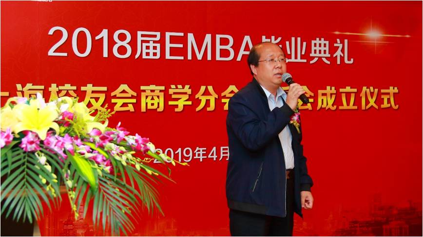 毕业典礼暨校友会筹委会成立仪式由刘柏副院长主持。首先,刘柏副院长代表3522vip浦京集团官网衷心祝贺2018届EMBA一班全体毕业学员顺利完成学业、获得沉甸甸的学位证书。盛赞EMBA一班同学勤奋学习,在授课老师和同学们的共同努力下,以98%的EMBA班级毕业率,刷新了全国的记录!