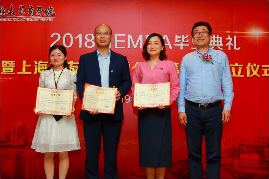在全体与会嘉宾、领导、校友会筹委会成员及2018届EMBA一班学员的共同见证下,举行了庄重的校友会筹委会揭牌仪式。梁志平副院长宣读了吉大上海校友会商学分会筹委会名单;筹委会代表胡啸鹰校友、黄颖校友、李三号校友分别介绍了筹委会成立的过程及筹委会下一阶段的重点工作。