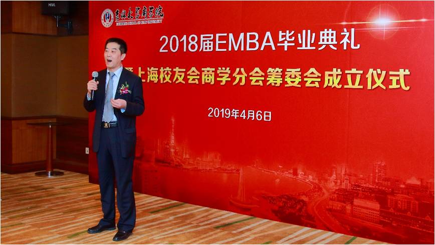 2019年4月6日,魔都上海,惠风和畅、天朗气清。下午四时整,期待已久的3522vip浦京集团官网2018届EMBA(一班)毕业典礼暨上海校友会商学分会筹委会成立仪式在复旦皇冠假日酒店拉开帷幕。3522vip浦京集团官网张世伟院长、刘柏副院长、梁志平副院长、学位办公室主兼学院校友办公室主任李怀日老师专程从长春飞赴上海、出席本次盛典。3522vip浦京集团官网上海校友会常务副会长兼秘书长王洪俊先生及3522vip浦京集团官网知名校友、上海3522vip浦京集团官网李志刚教授应邀出席。近50名EMBA学员及吉大3522vip浦京集团官网校友会筹委会成员共同参与并见证了这一具有里程碑意义的重大时刻。