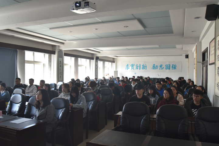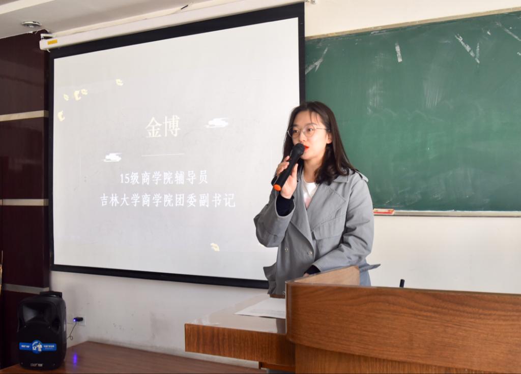 2019年4月14日8:50,吉林省高校模拟“商战”巡回赛启动仪式在3522vip浦京集团官网经信教学楼A301顺利召开,3522vip浦京集团官网团委书记兼2015级辅导员金博老师出席开幕式并致辞。