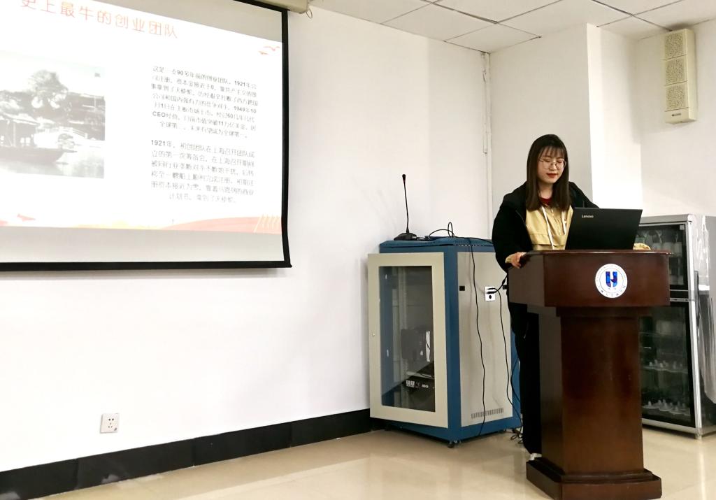 大会最后,刘美言同学进行了以“毫不动摇地坚持和发展中国特色社会主义”为主题的党史专题分享。重点分析了“自己的路自己走”“革命理想就是道义制高点”这两句话,并赞颂了李大钊烈士等共产党人的英勇事迹。