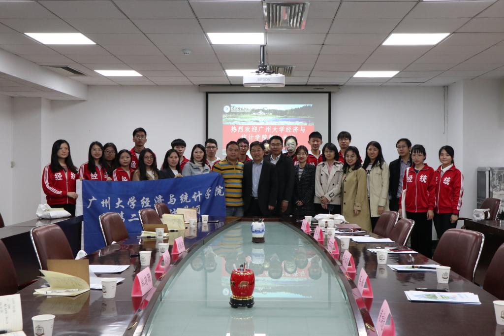 随后,广州大学的三位老师也从发展历史、专业设置、师资力量、人才培养、科学研究、对外交流等方面介绍了广大经济与统计学院的基本概况。双方就学院学术建设等进行了深入交流。