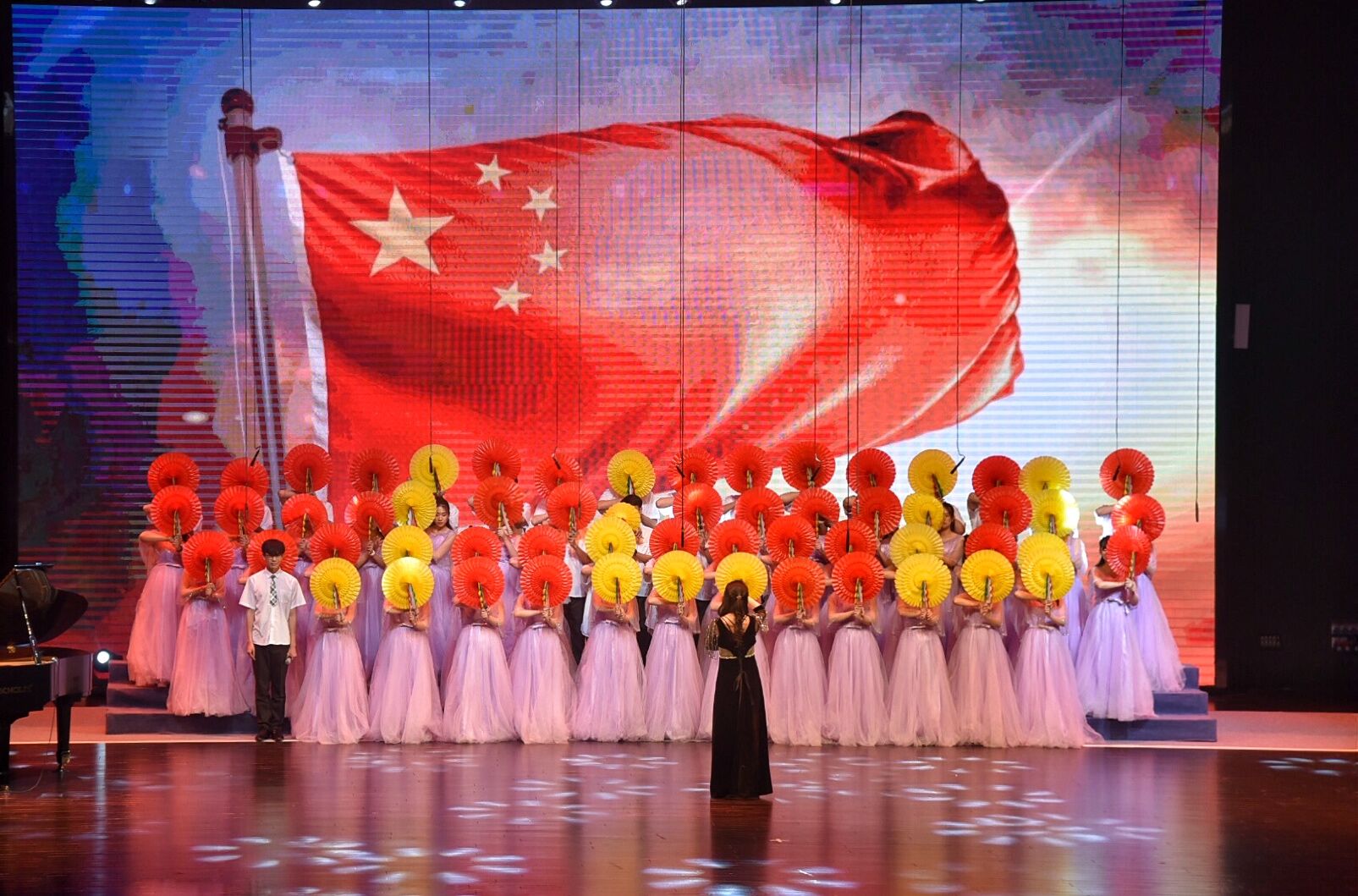 4月25日19:00,为纪念五四运动100周年,使学生重温红色精神,3522vip浦京集团官网在鼎新大讲堂举行了“纪念五四运动100周年”我和我的祖国主题合唱展演。3522vip浦京集团官网校长张希、校党委书记杨振斌以及相关各院领导、老师参加了此次展演。