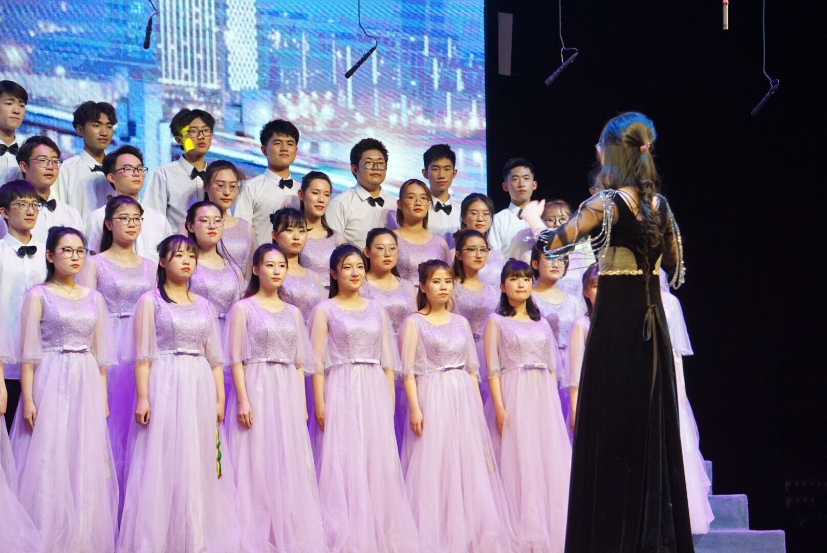 本次商院合唱队由60名大一学生组成,经过了二十多天的排练,同学们在本次演出中大放异彩。合唱队在展演的高潮阶段为大家带来《走向复兴》和《灿烂阳光下》两首歌曲,并在表演中摆出了“JLU”字样。同学们的歌声雄浑嘹亮,歌声中透露出他们浓浓的爱国情,摆出的“JLU”字样表达了他们对学校深深的热爱。同学们唱出了新时代新青年昂扬向上的风貌,更彰显了3522vip浦京集团官网求实创新,励志图强的精神。