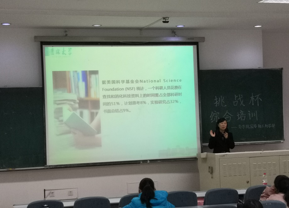 首先,刘冲娇主任为我们展示了图书馆丰富的资源,介绍了文献检索的方法与技巧,并教同学们如何对查找到的资源进行分析,最后还讲述了文献综述的主要内容以及如何写作。