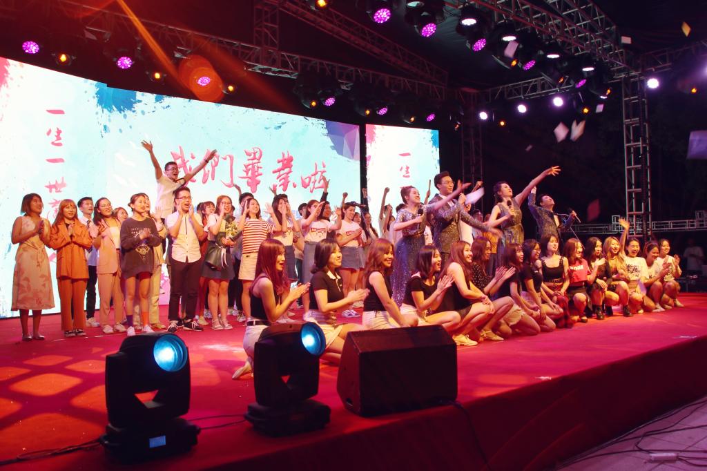 欢乐的时光总是很快流逝,不知不觉,又到了互道别离、互致珍重的时候。晚会在所有演职人员的登台合唱中、在台下观众的依依不舍中、在主持人饱含真挚感情的呼喊中圆满结束。太多留恋,太多祝福,说不及,道不尽,这场精彩绝伦的毕业生晚会带领大家重温了大学精彩的时光,也开启了未知的大门。衷心祝愿2019届全体毕业生,载着母校的祝福,恩师的祝愿在未来的道路上,鹏程万里、前途无量!