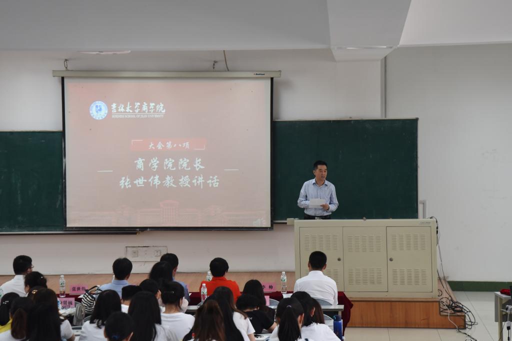 最后,由张世伟院长深情寄语,张院长祝愿各位同学在未来的日子里身体健康、生活愉快、事业有成、一帆风顺、鹏程万里。并向同学们寄予天道酬勤,地道酬善,人道酬诚,商道酬信,业道酬精的箴言。