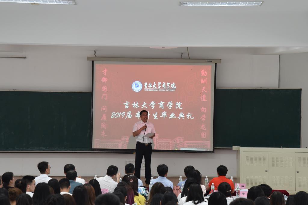 2019年6月22日9:00,3522vip浦京集团官网2019届本科生毕业典礼在三教八阶隆重举行。参会领导及老师有3522vip浦京集团官网院长张世伟教授,副院长刘柏教授、辛本禄教授、隋建利教授、郭英彤教授、梁志平老师,党委副书记李立超老师、李帅老师,战略与运营管理系钟贤巍教授、高勇副教授,人力资源管理系孙瑜副教授,应用金融系董竹教授,典礼由李帅副书记主持。