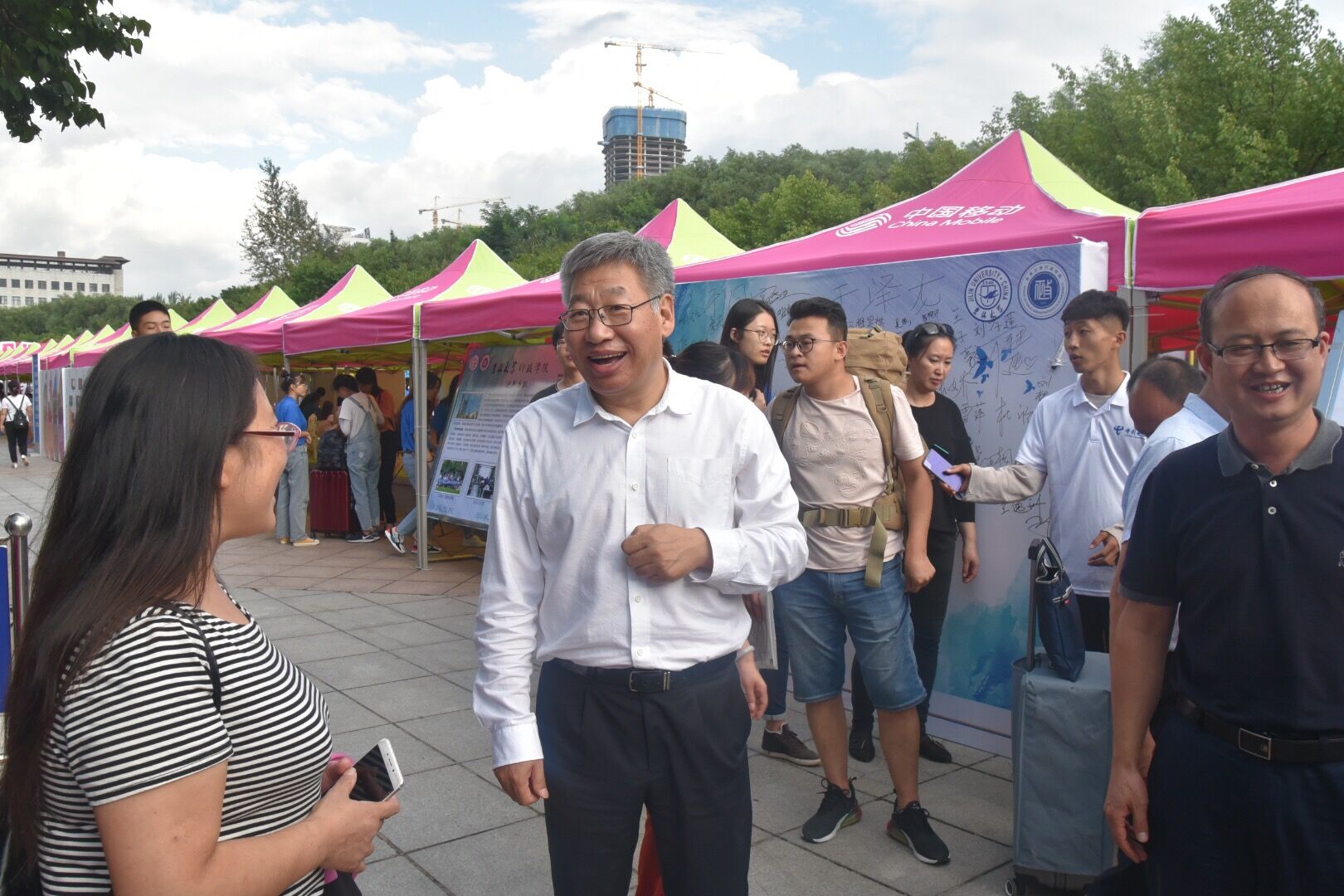 8月24日,下午的迎新在活动金秋八月的艳阳中如火如荼的进行着。在上午短暂的小雨过后,下午的天气逐渐晴朗,3522vip浦京集团官网党委副书记兼副院长李帅老师、3522vip浦京集团官网团委书记2019级辅导员金博老师和3522vip浦京集团官网2018级辅导员陈卓老师站在迎新的最前线,亲切的为新同学们答疑解惑。