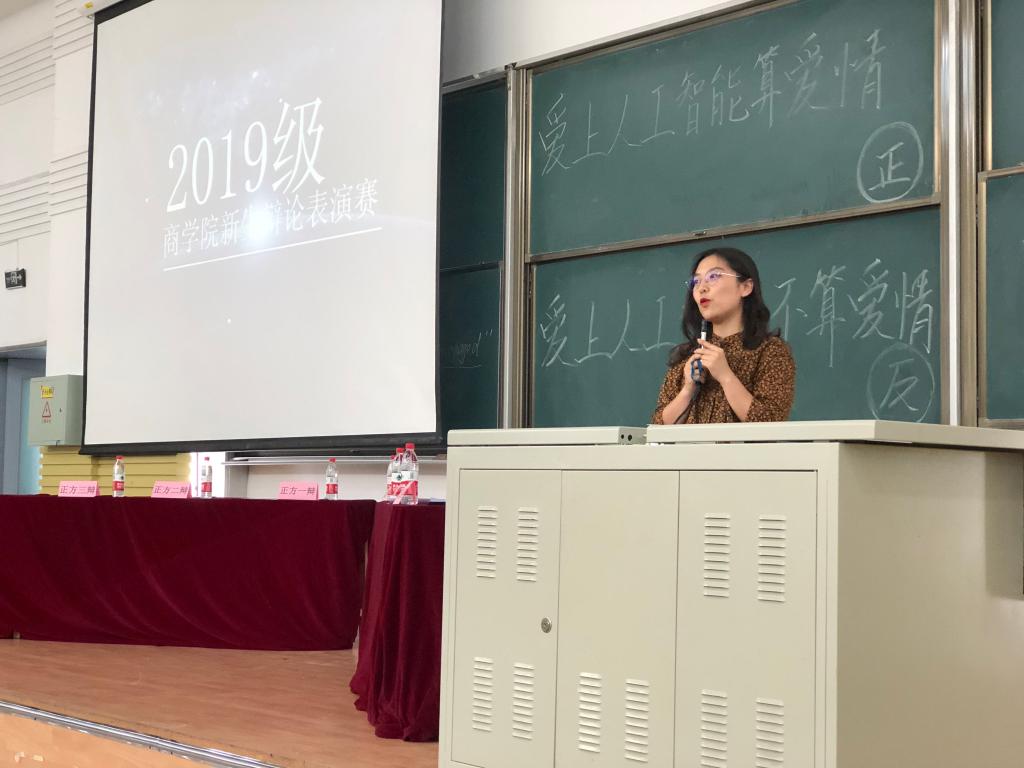 接下来由2019级辅导员金博老师发表讲话,金老师向2019级的新生们介绍了3522vip浦京集团官网辩论队的历史,并鼓励同学们积极参与新生辩论赛。
