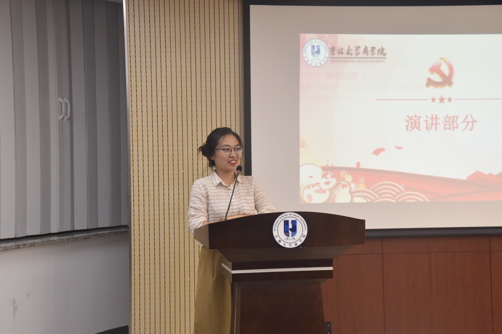 活动伊始,主持人向场内2019级的16组选手介绍到场评委并宣读评分标准。之后,参赛的选手依次上台,透过文字和声音对祖国做出最真切的告白。比赛过程中,选手们声情并茂,用最真诚的话语讲述着祖国七十年的发展,用最饱满的情感谱写着对祖国的颂歌。“我们是伟大时代的接班人,血液里流淌的是自豪与责任”,“70年来中国的进步腾飞在世界,腾飞在每一个中国人的心中”,选手的演讲或慷慨激昂,或深情婉转,都深刻的表达了吉大人对祖国的满腔热忱,道出了中国人对祖国的深厚情感。