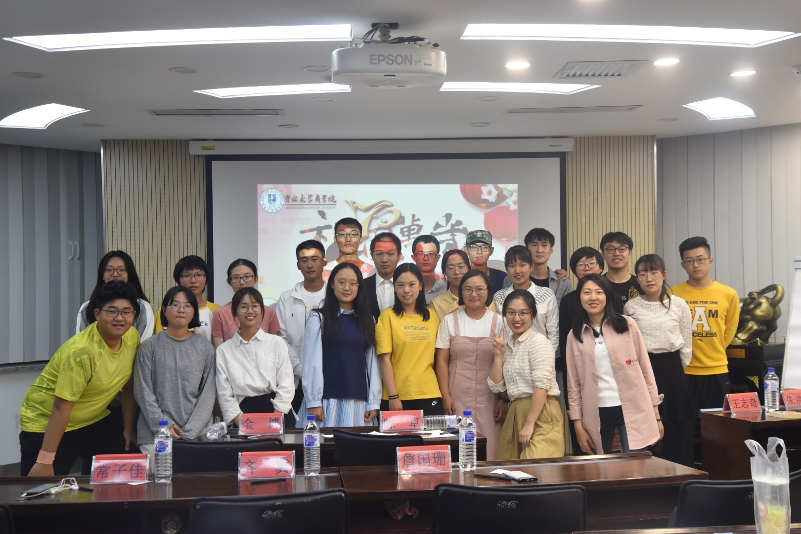 随后的抽奖环节中,金博老师、陈卓老师和同学们的互动让现场的气氛变得更加活跃。在轻松愉快的氛围中,金博老师对活动中同学们的表现做出总结和表扬,并鼓励同学们继续组织和参加这类有意义的活动,在活动中感受祖国的繁荣昌盛。最后,活动评选出一位特等奖选手、一位一等奖选手、两位二等奖选手、三位三等奖选手,金博老师、陈卓老师、齐冀同学分别为选手们颁奖并合影留念。