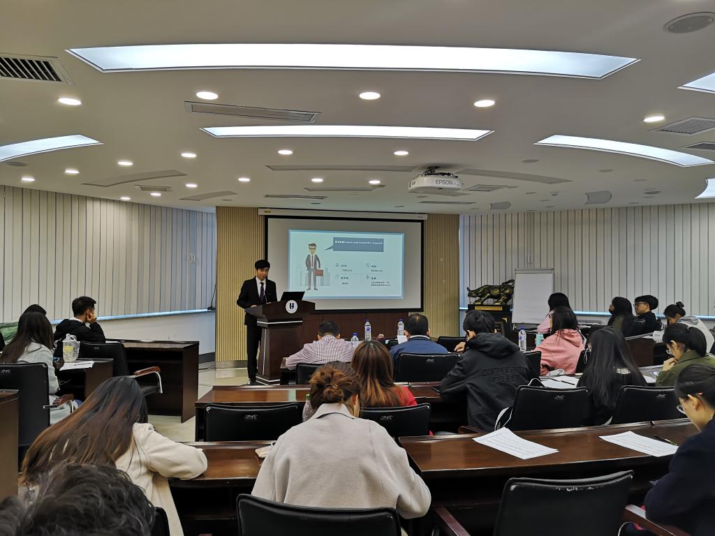 答辩按照18、17、16级的顺序进行,同学们用精心准备的PPT加以自己的解说,从学习,生活,工作以及社会实践各方面进行阐述。在短短三分钟的时间内,他们展示了自己优异的学习成绩和丰富多彩的课余生活,充分表现了自己对于争取国家奖学金的积极态度以及自己强有力的竞争优势。而现场的评委们也以极其严肃公正的态度来对待此次的答辩,通过考察同学的品德学识,仪表举止,综合分析能力,人际交往能力,应变能力,语言表达能力等,来确定最终获得国家奖学金的同学。