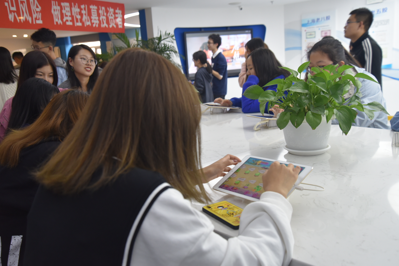 随后,在东北证券工作人员的引导下,同学们参观了投资者教育基地,体验了教育基地的金融设备,听取了工作人员的细心介绍,并将不懂的问题向工作人员请教,都得到了专业人员的详细答复。