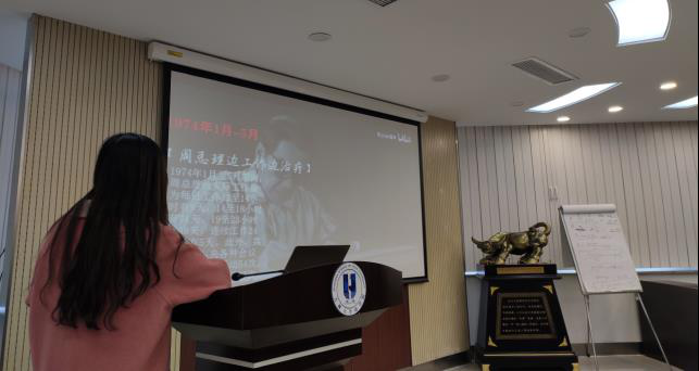 随后,于润佳同志作为一名学生党员,以“不忘初心,牢记使命”为主题,以新时代党的教育方针和总要求为出发点,以一名学生党员的学习工作为主要视角,讲解了新时代里身为一名学生党员的初心和使命,号召党员要“守初心、担使命、找差距、抓落实”,以实际行动践行自己的入党初心。