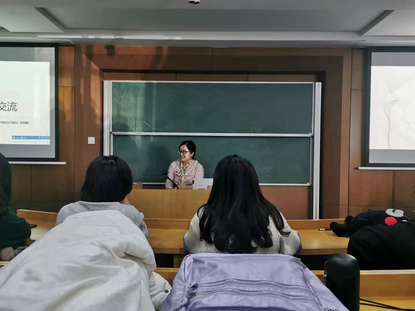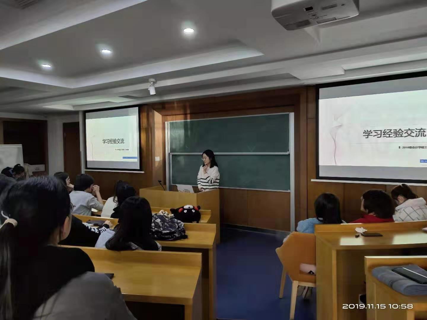 自我介绍后,梁老师表示自己听到同学们能够相处融洽、积极适应大学生活,感到非常欣慰。随后,梁老师邀请2018级会计学硕士在读的学姐为一班同学们分享了学习经验,学姐与同学们分享了学习方法、保研需要做的准备工作,以及对生活规划的一些建议,同时耐心地解答了同学们提出的问题。