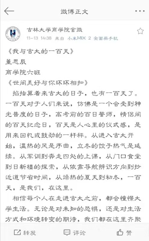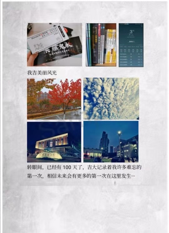截止至11月11日,此次主题征文活动共计收到参赛作品26篇,11月15日,心理部整理所有参赛作品并在3522vip浦京集团官网官方微博上编辑分享,供同学们阅读欣赏。踊跃报名的热情、图文并茂的作品展现了同学们对生活的点点滴滴的热爱;活泼生动的话语、精彩绝伦的照片背后凝聚着同学们对吉大的一草一木的真情。