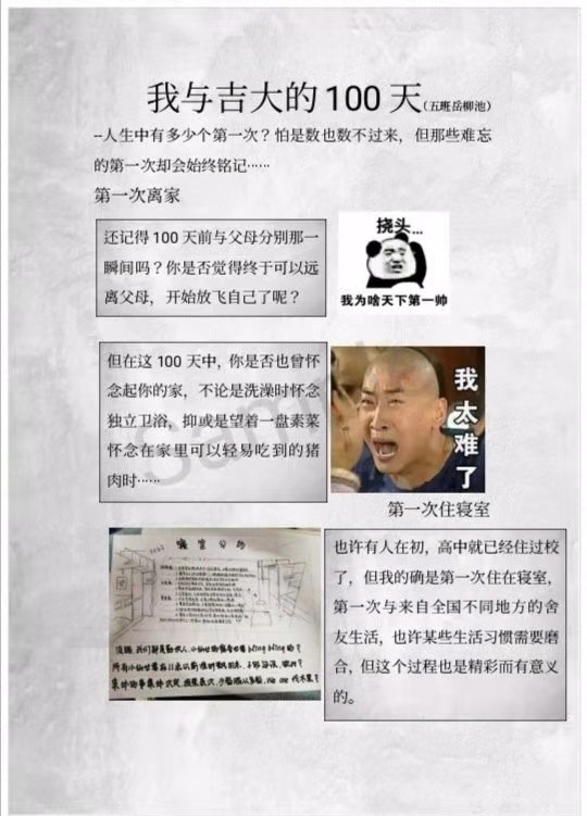 本次活动旨在让大一新生快速融入吉大、融入集体,从记录大学生活的点点滴滴中感悟生活的美好,从而真正做到“心理入学”。同学们在这次活动中见证了自己的成长,用努力与认真为自己提交一份满意的答卷,使本次活动取得了圆满的成功。