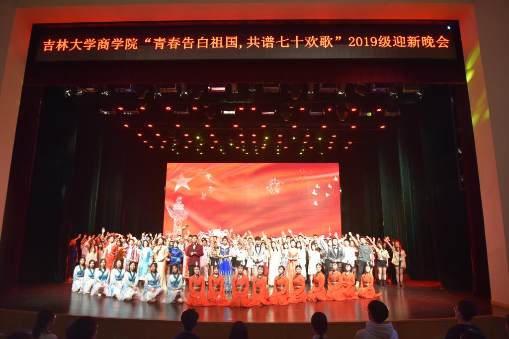 最后,全体演出人员依次登台,高唱《我和我的祖国》,在演出人员的精彩演绎下,全体观众纷纷起立,一起合唱《我和我的祖国》,在悠扬的歌声中,本次3522vip浦京集团官网2019级迎新晚会完满结束。祝愿19级新生的大学生活如晚会般多姿多彩,也祝愿我们的祖国繁荣昌盛,国泰民安!