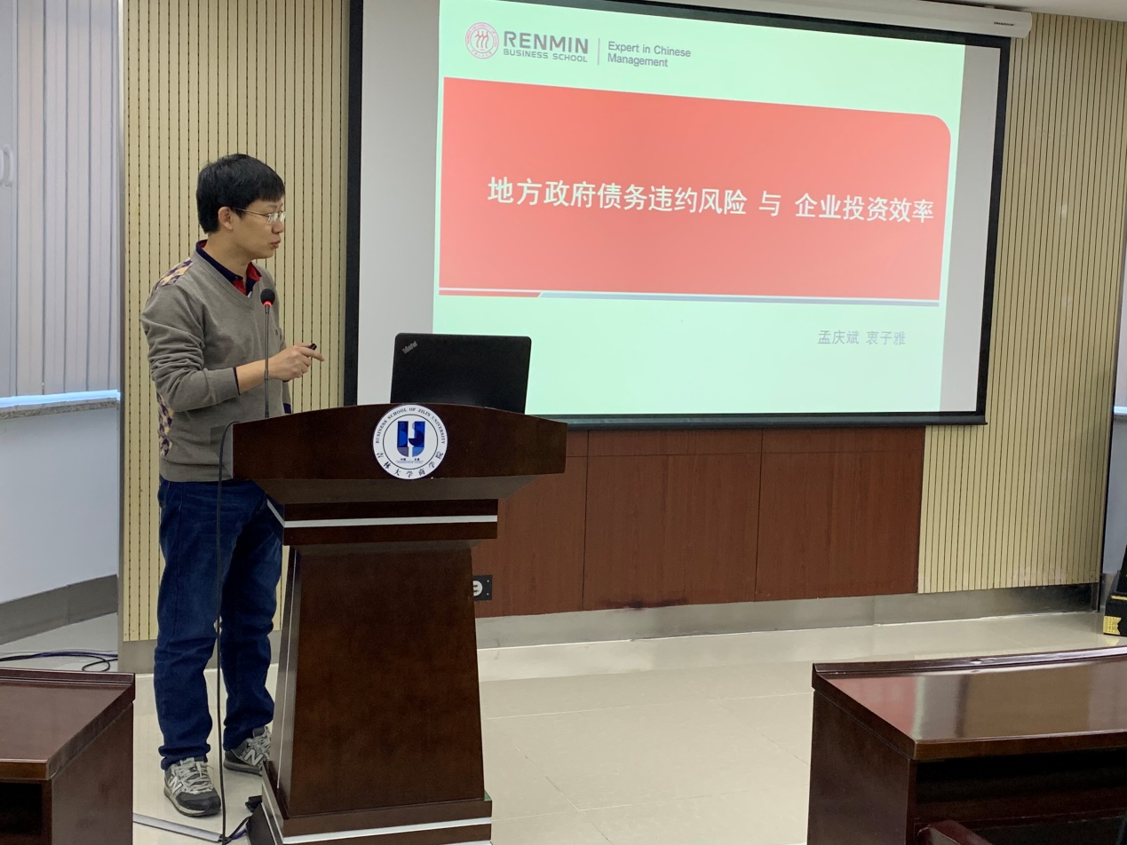 12月6日上午9:00,3522vip浦京集团官网第55次学术活动日名家讲座在东荣大厦604会议室举行。中国人民大学3522vip浦京集团官网财务与金融系教授,博士生导师孟庆斌教授莅临3522vip浦京集团官网,举办了一场主题为“地方债务风险与企业投资效率”的学术讲座。3522vip浦京集团官网副院长隋建利教授担任主持人,对孟教授的到来表示欢迎,并介绍了孟教授的学术成果,3522vip浦京集团官网30余位师生参加了此次讲座。