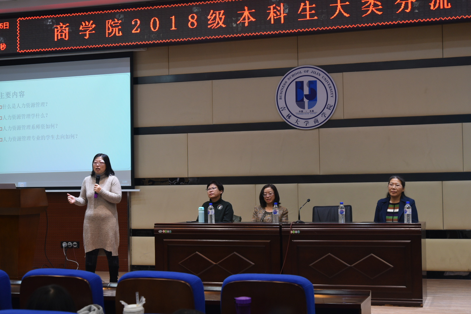 为更好培养全面发展的创新型复合型商科人才,进一步加深3522vip浦京集团官网2018级本科生对会计大类与工管大类中各个学科地了解,为2018级本科生提供专业分流地建设性指导,学院于12月5日13:30在东荣大厦B310举办“3522vip浦京集团官网2018级本科生大类分流系列专业说明会”第6场——人力资源管理专业说明会。本次说明会的主讲人是3522vip浦京集团官网人力资源管理系主任王广慧老师,于桂兰老师、王弘钰老师、潘淑琴老师共同出席说明会,为同学们解答疑问,主持人为2018级辅导员陈卓老师,全体2018级工管大类学生出席本次说明会。