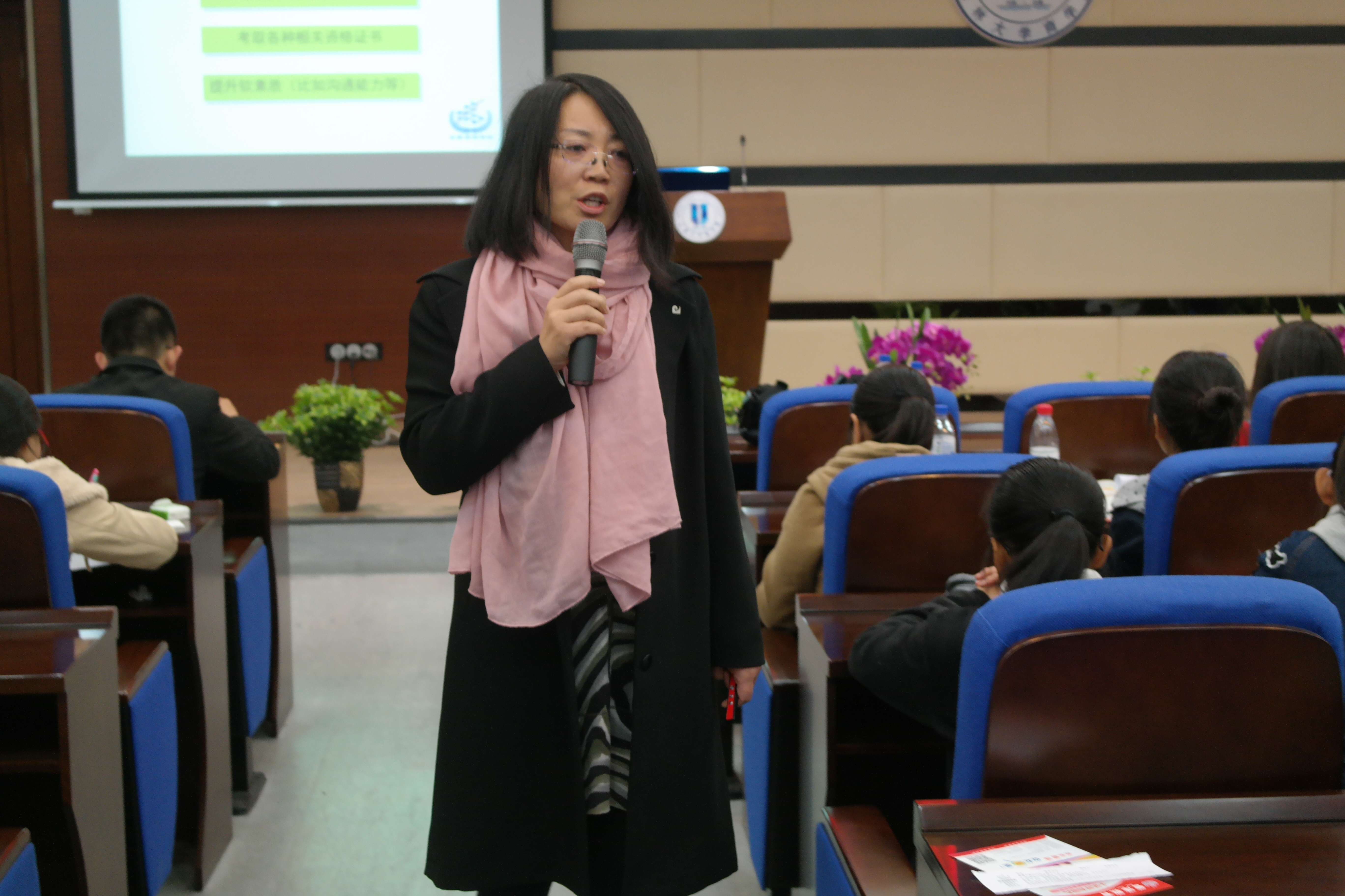 李妍春老师向同学们详细讲解了注册会计师的相关内容,并引用自己的亲身经历和多年的学习工作心得,与同学们分享自己的人生感悟,对同学们该如何充实大学生活给出了自己的建议,对同学们的发展方向给予指导。
